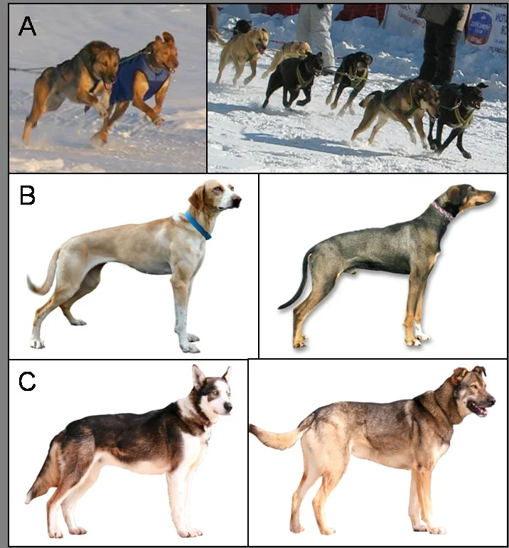Sled dogs come in many different colors, shapes, and sizes, ranging from the northern breeds of Alaskan Husky, Siberian Husky, Alaskan Malamute, Samoyeds, Eskimo Dogs, Greenland Dogs and many, many more, to breeds which are not generally thought of as sled dogs but who posses the qualities sought after by racers, such as speed and endurance.