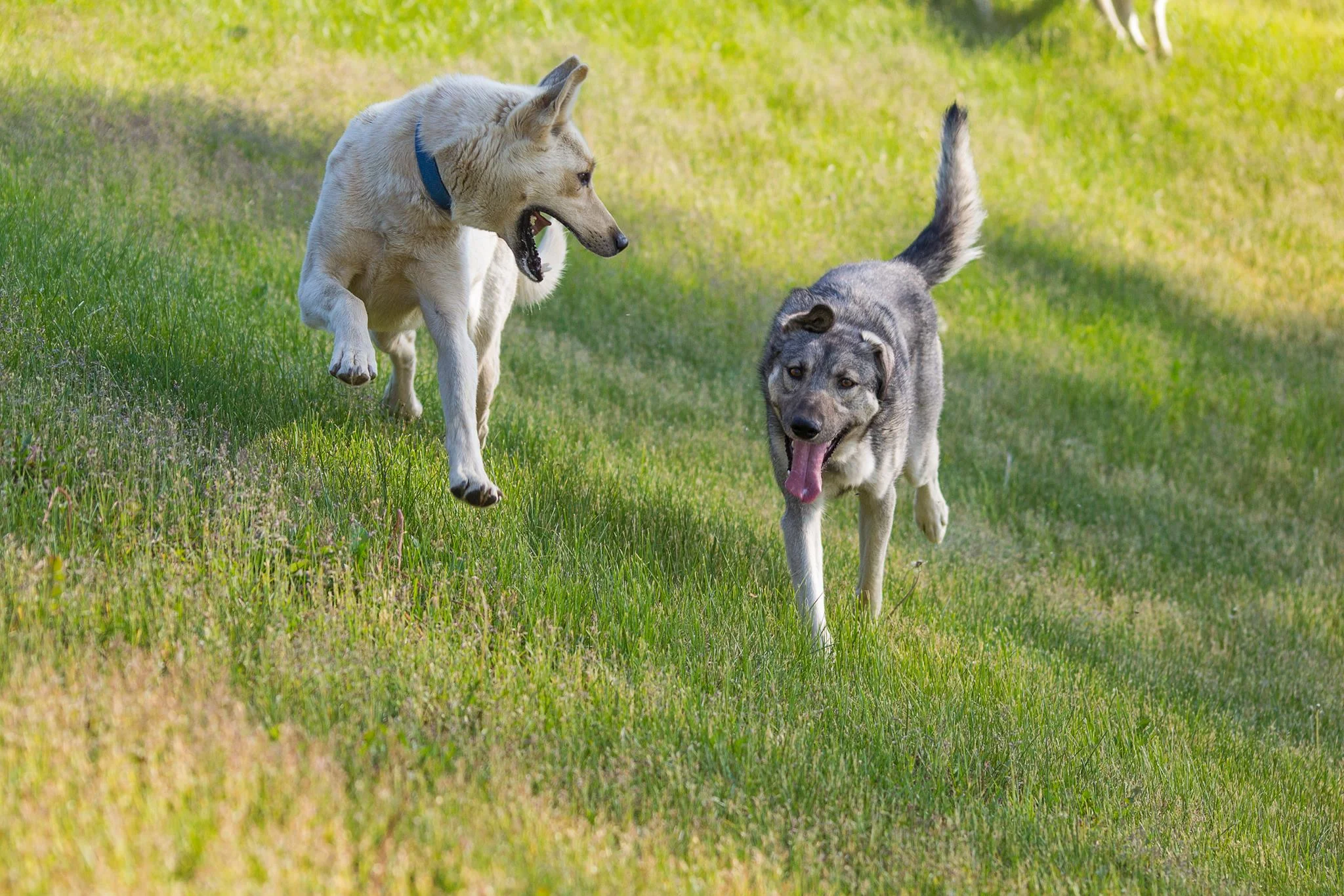 Sled dogs enjoying the summer time. (Ari Sigglin)